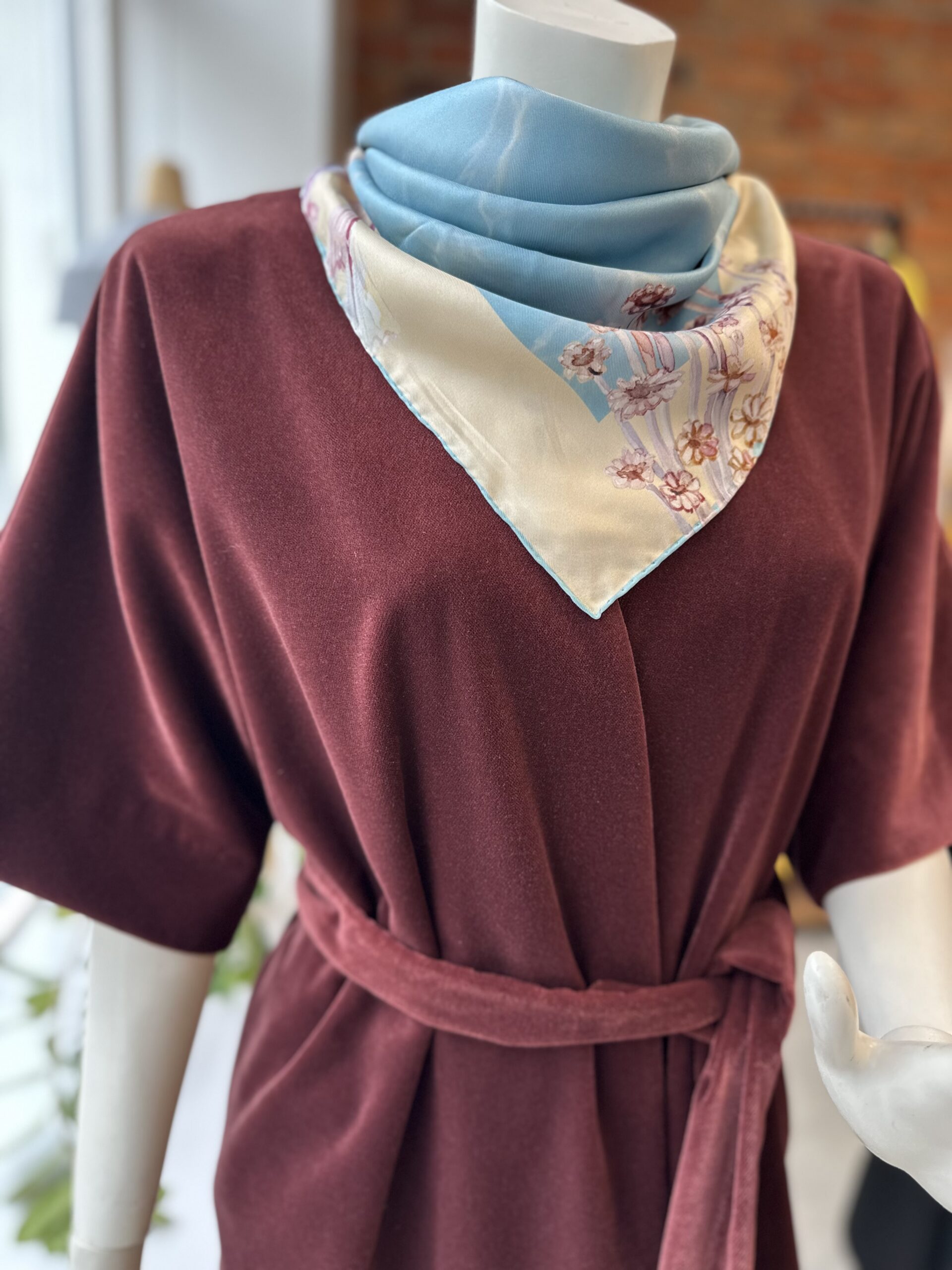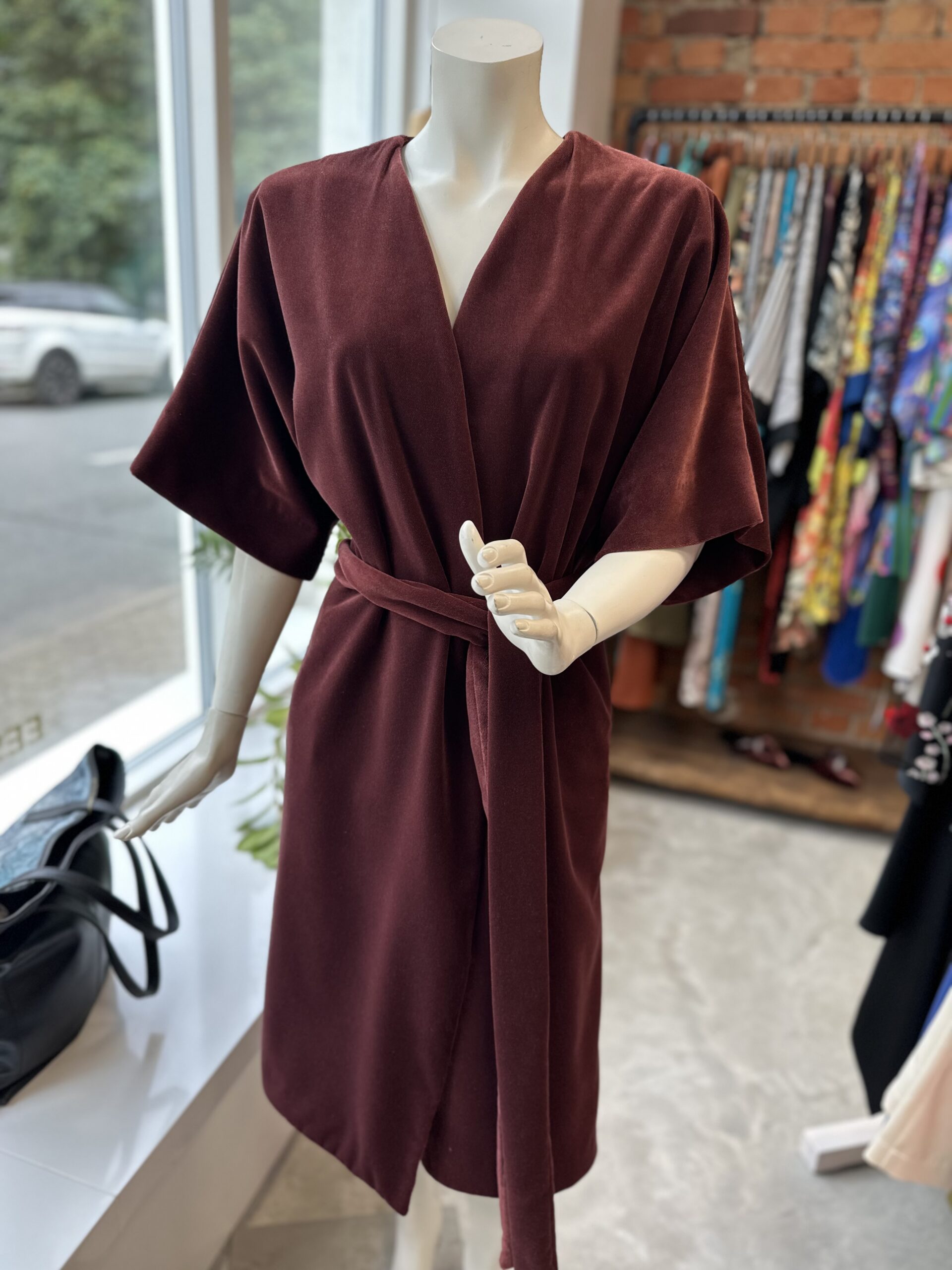 Ploomikarva sametist kimono, millel kaunis kuldne vooder, taskutega ja vööga. Ainueksemplar.