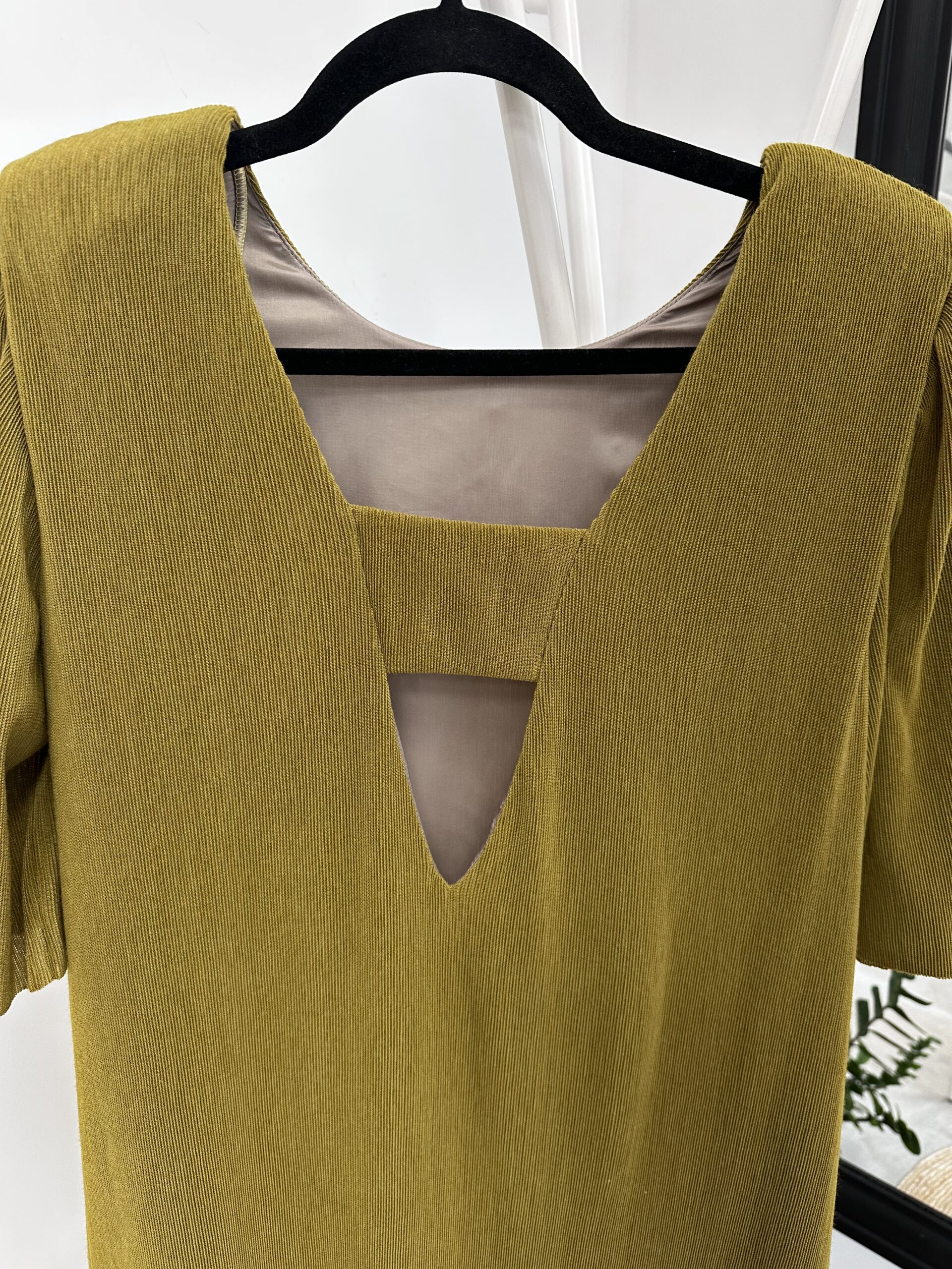 Kleit avara lõikega, voodriga, sobib suurustele S-L Ainulaadne värv, eriliseks teeb selle mudeli kolmnurkne selg lahti lõige.