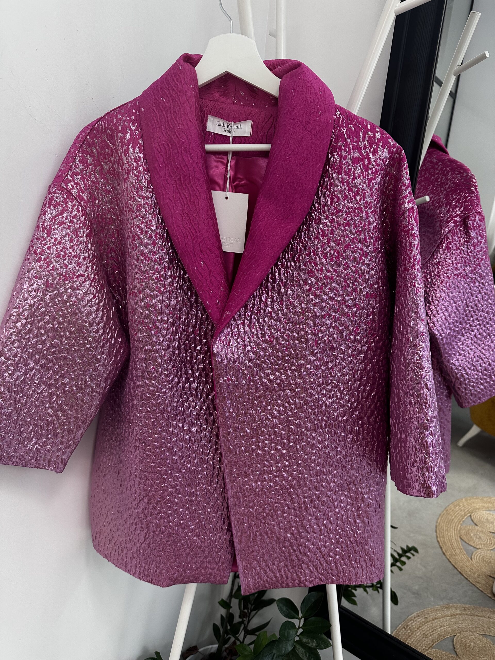 Efektne kimono, säravroosa, voodriga, taskutega.