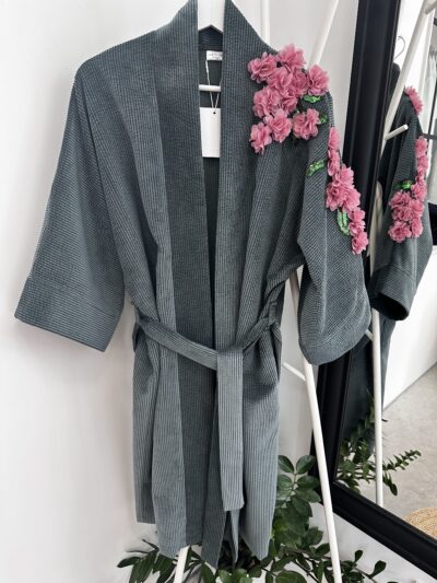 Tumeroheline velvetkimono 3D lilledega
