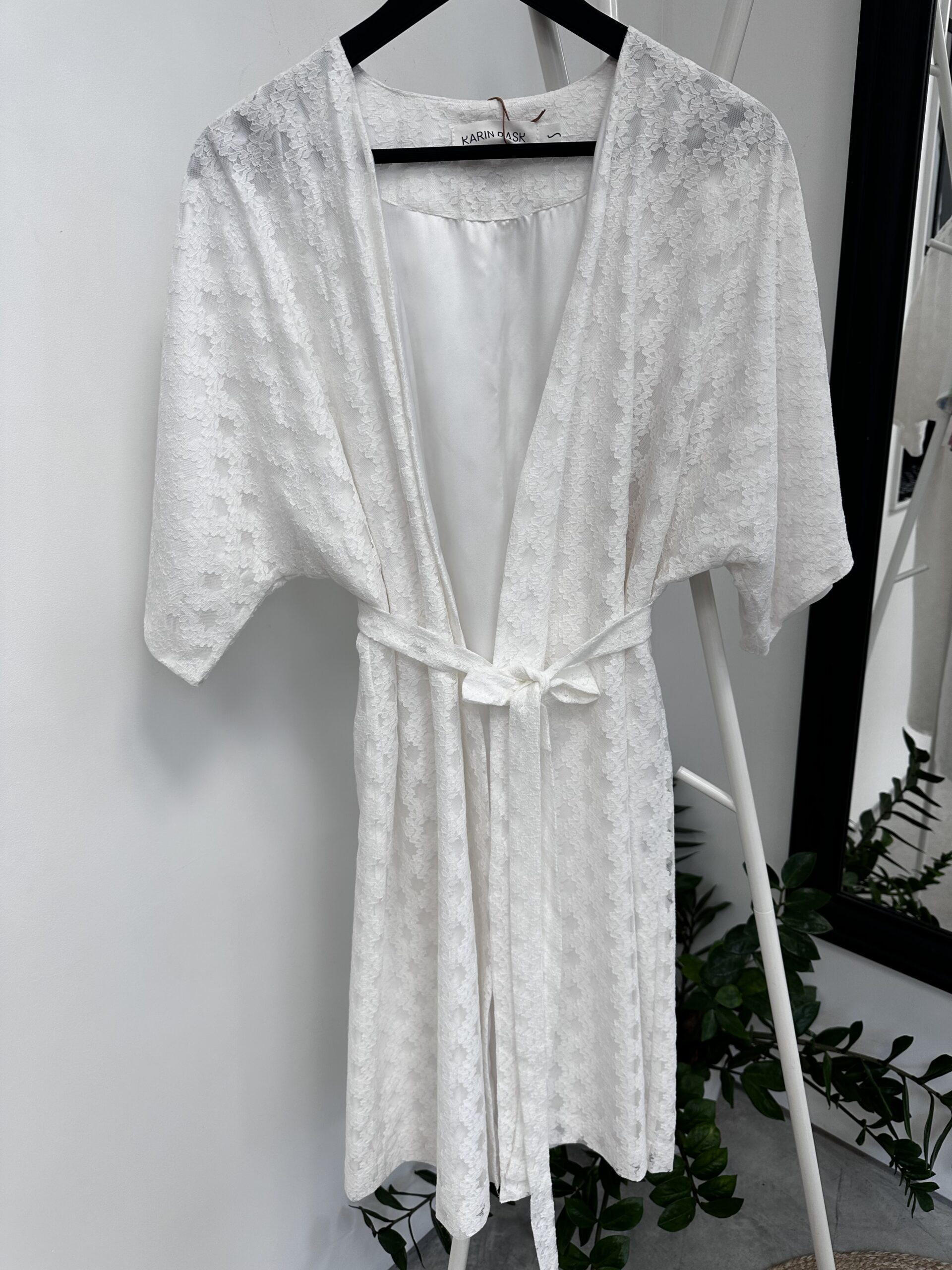 Kaunis valgest pitskangast voodriga kimono, vööga.