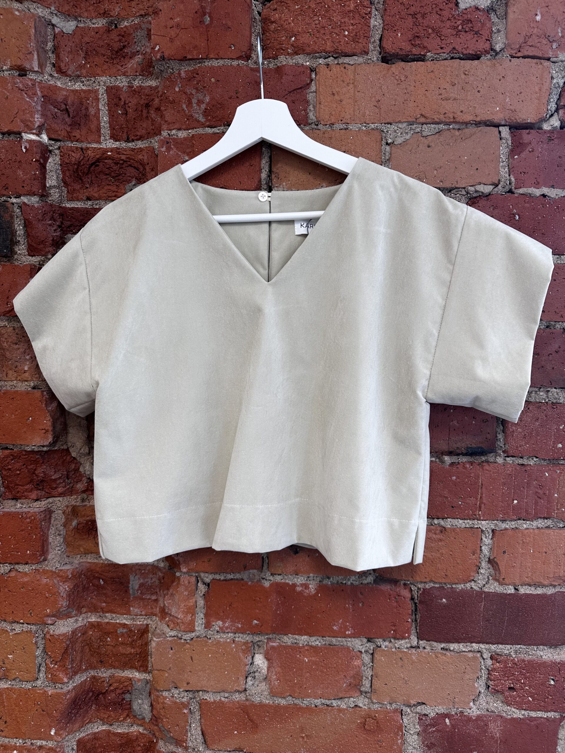 Sametist hele pluus, sobib hästi valge samet seelikuga.